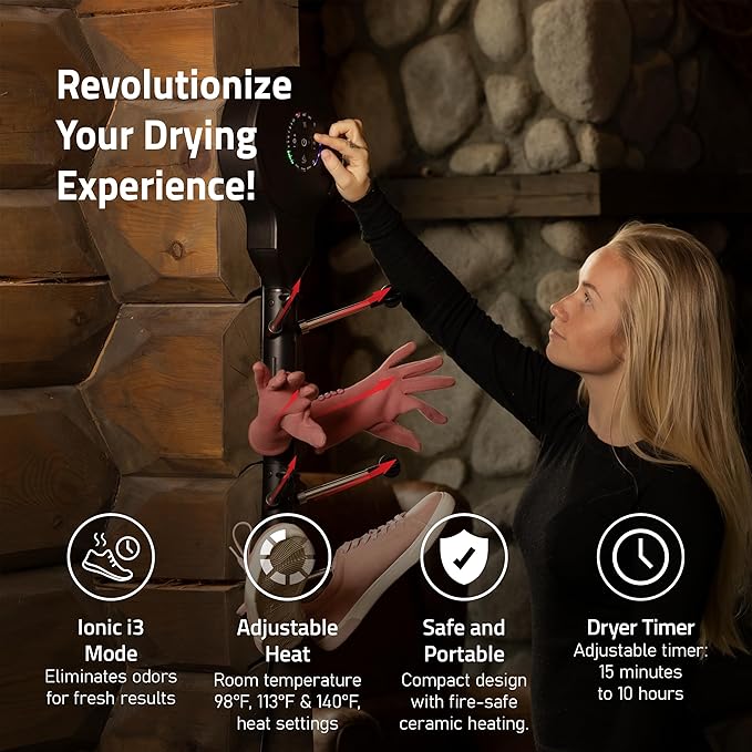 - Unmatched Turbocharged Efficiency - Experience the power of our patented turbine technology up to 5 times faster than a similar shoes dryer. With Tornado Mode, the fastest drying setting, you can swiftly conquer wetness, whether you're a busy parent, an outdoor enthusiast, or anyone on the go