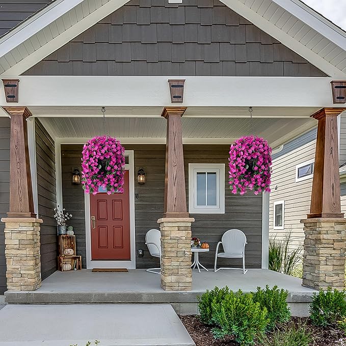 - GOOD QUALITY: The hanging basket and artificial flowers were made of good quality material that don’t require maintenance after assembly. It’s UV resistance and won’t fade, sturdy enough for any weather. No watering needs