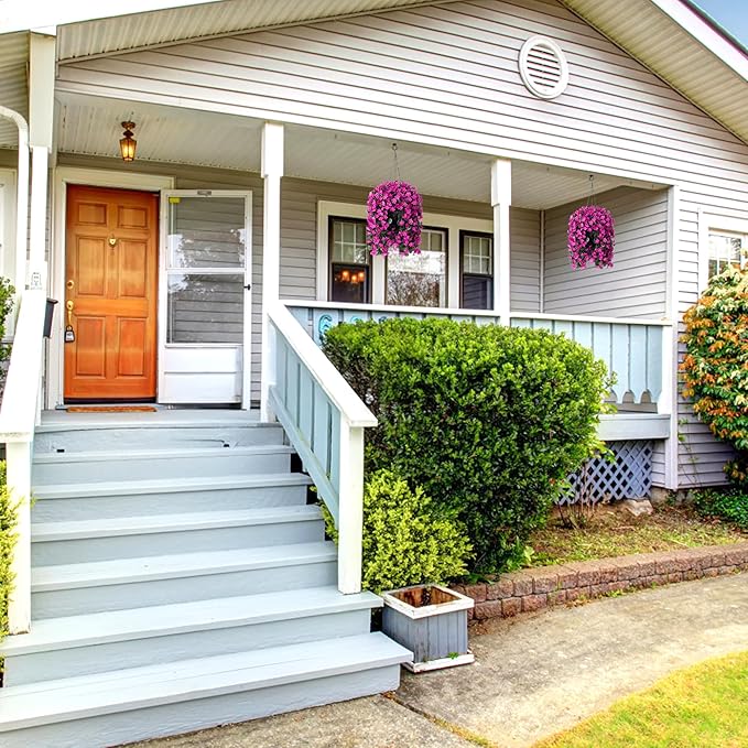 - ARTIFICIAL GREENERY DECORATION: The fake hanging flower in a basket looks real and stylish, making it the perfect hanging basket for your home, patio, balcony, garden, indoor and outdoor. It blooms all year and adds a sense of spring to your home