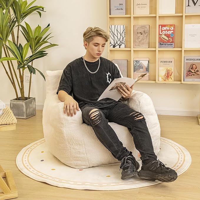 - Multiple Uses: This comfy bean bag lounge chair is perfect for dorms, bedrooms, living rooms, balconies, offices, game rooms, and more. You can sit comfortably in this fluffy bean bag chair to read a book, play games, lounge, or watch TV. The bean bag chair is perfect for apartments, dormitories, bedrooms, living rooms, balconies, offices, playrooms, etc.
