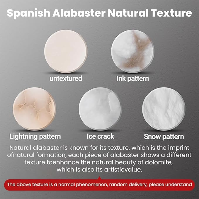 - 【Natural Alabaster & Unique Texture】Dining room chandelier is made of real natural stone. Each piece is carefully selected and hand-polished, which enhances the natural beauty of the stone while presenting a sophisticated and charming appearance. It is known for its unique patterns, which are marks formed by nature. Due to the differences in natural materials and handcraftsmanship, no two pieces are exactly the same.