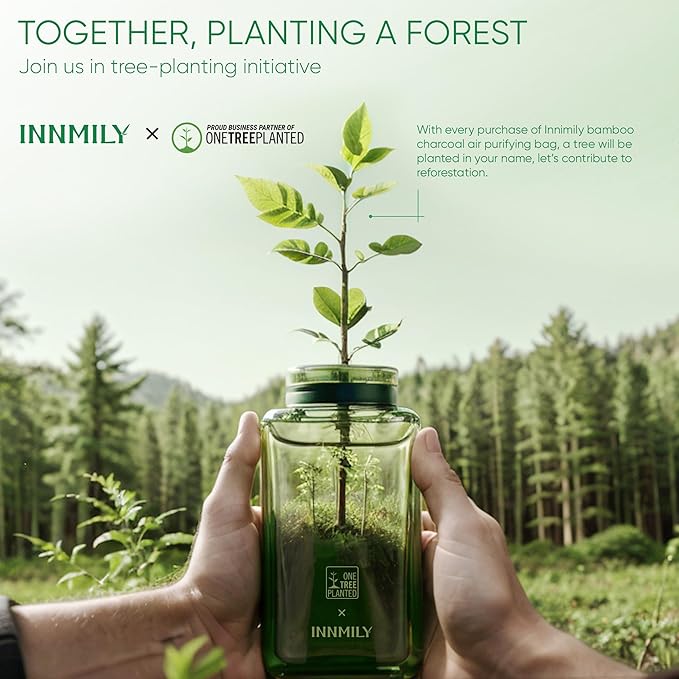 - TOGETHER, PLANTING A FOREST - We invite you to join us in tree-planting initiative - every purchase of Innimily bamboo charcoal air purifying bag, a tree will be planted in your name, let’s contribute to reforestation, aligning your well-being with environmental responsibility. natural solution that not only captures odors but also contributes to sustainability. Innmily home deodorizer bring fresh air, we offer no question asked money-back guarantee if you were not satisfied with the smoke absorber