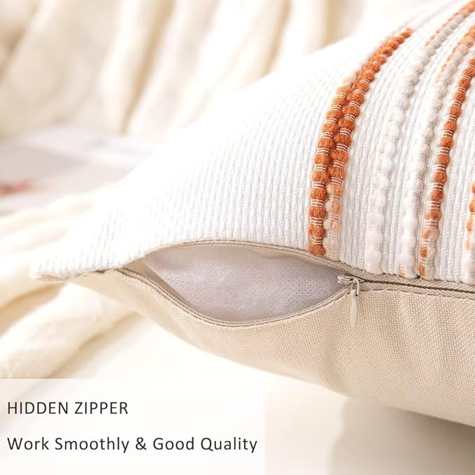 - Fabric: The red stripe pillow case is made up of chenille and tufted on the front, and premium linen fabric on the back. Different styles on both sides offer you multiple decorative ideas. Sturdy stitching and careful hemming make the red decorative pillow covers durable and exquisite. The zipper pulls up smoothly and is not easy to break