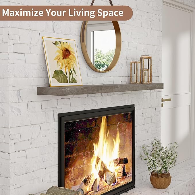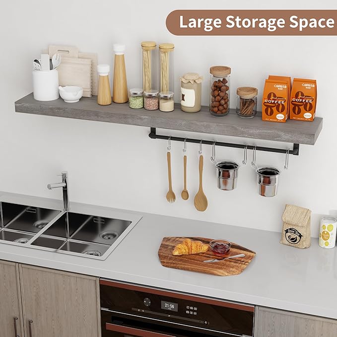 Axeman Floating Shelves for Wall, Rustic Elm Wood 56'' W x 8" D Wall Shelf with Invisible Bracket, Large Long Wall Mounted Storage Shelves for Living Room, Bedroom, Kitchen, Bathroom Decor, Grey