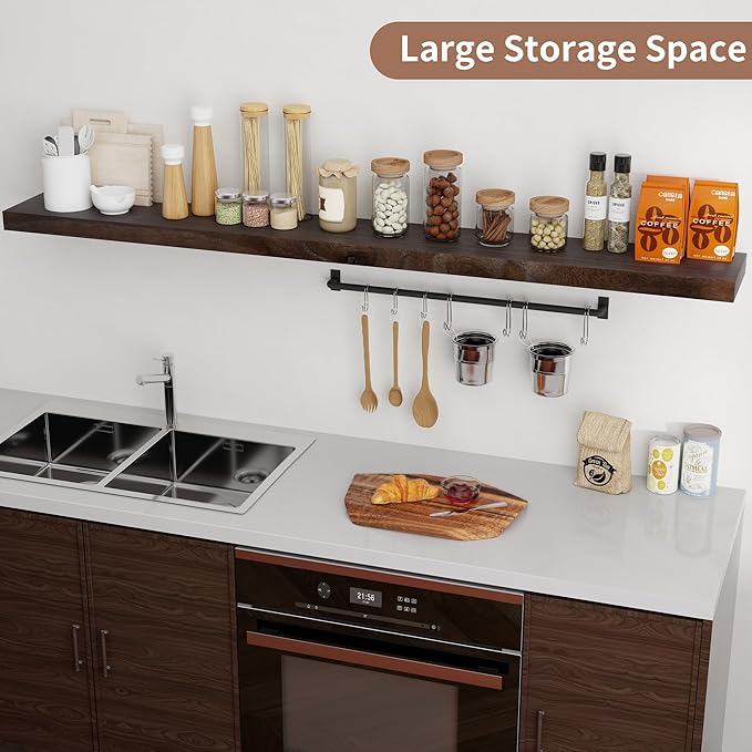 Axeman Floating Shelves for Wall, Rustic Elm Wood 72'' W x 8" D Wall Mantel Shelf with Invisible Bracket, Large Long Wall Mounted Storage Shelves for Living Room, Bedroom, Kitchen, Bathroom, Walnut