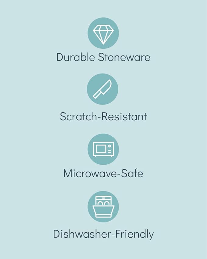 - ✅ Pure Joy & Culinary Delight: Crafted from solid stoneware with a high-fired, glazed, and scratch-resistant surface, this dish set for 4 is for those who cherish life's beautiful moments and appreciate top-notch quality in their dishware set