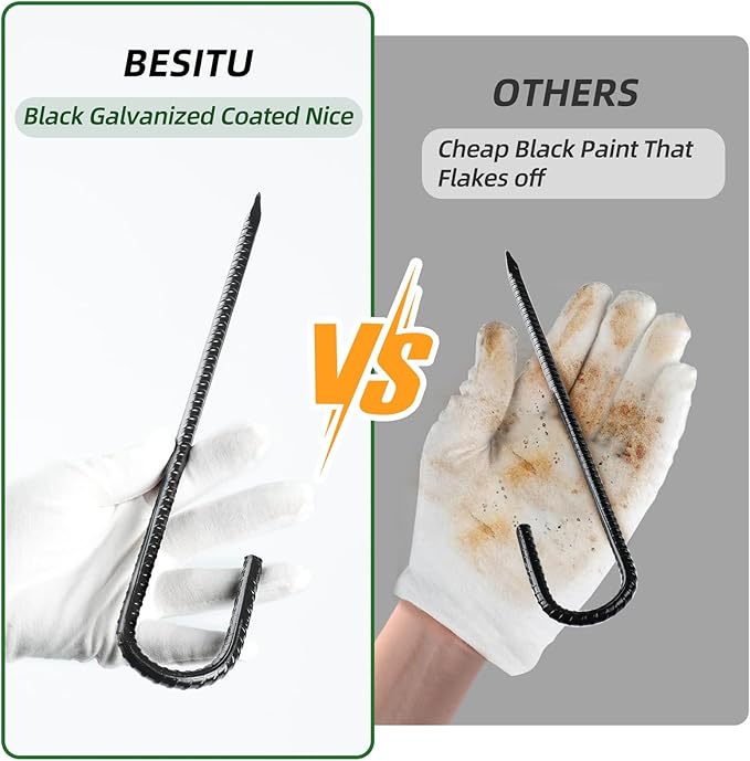 - 【TWO YEAR WARRANTY】32-pack j hook rebar stakes. Order Besitu metal stakes today, you would love it! If not, please feel free to contact us, we would provide the best solution within 12 hours.