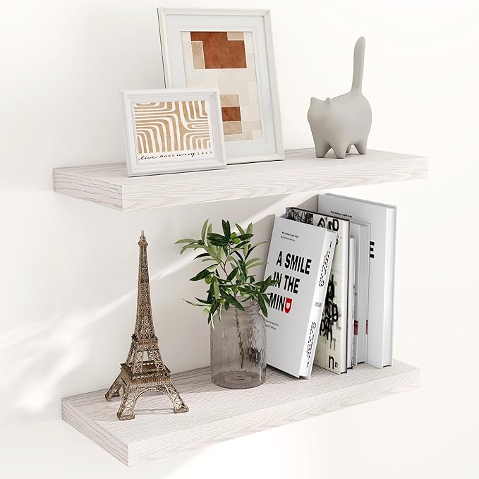 - 【FARMHOUSE RUSTIC WALL SHELF】These floating shelves are made of premium engineered wood board and invisible one-piece bracket. The rustic wooden grain surface add character and warmth to any modern or traditional interior with these thick floating shelves, contrast shelves at staggering heights on the wall or mount side-by-side or in the corner for a clean streamlined look.