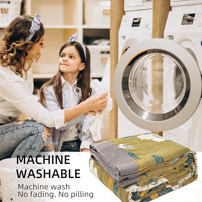 Boho Throw Blanket for Bed - 100% Pure Cotton Ultra Soft Rustic Quilt - Farmhouse Decor Bed Blankets, All Season Rustic Throw for Sofa Couch Chair(91''x 98'', Flower Branch)