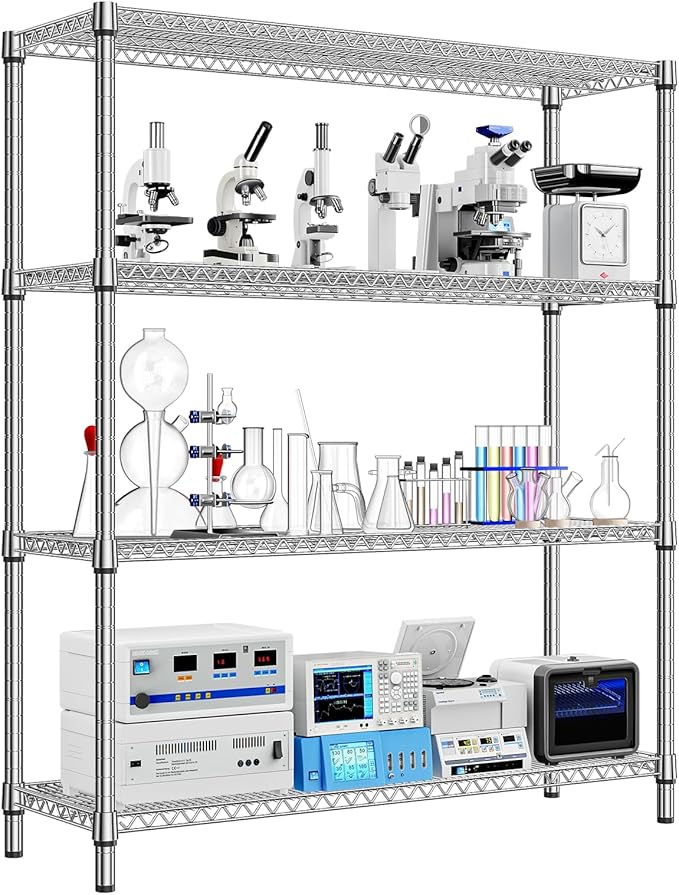 1760 LBs 4 Tier Storage Rack Metal Wire Shelving Unit, Storage Standing Shelf Organizer for Laundry Bathroom Kitchen Pantry Garage Utility Room, Chrome 17.7" D x 59.1" W x 70.4" H