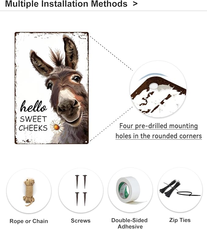 ALKB Western Bathroom Decor Vintage Donkey Gift - Funny Bathroom Restroom Toilet Decoration - Hello Sweet Cheeks Metal Sign 8x12 Inch