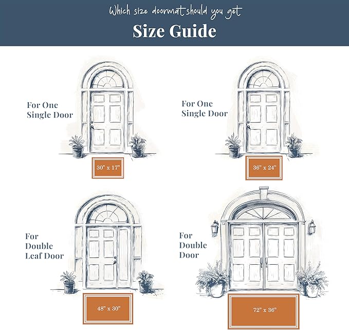 - The Perfect Size - Measuring 48 x 30 inches, our welcome mat outdoor entrance rug is just the right size for double door entryway. It’s big enough to accommodate three people standing side by side, perfect for a large front door entrance or oversized front door mat. It’s the ideal front door mat outside entrance rug for any home or office.