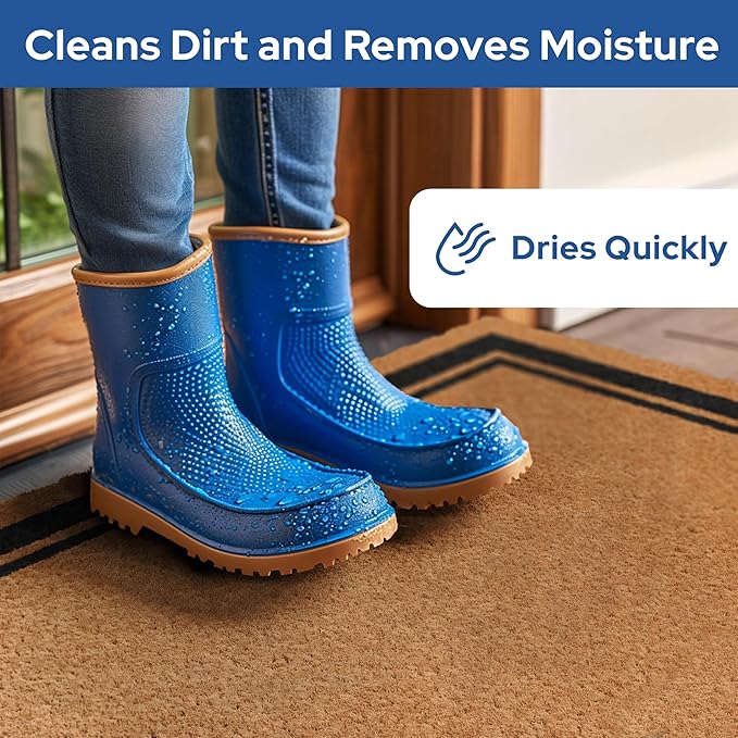 - Versatile - Our rectangle border design welcome doormat outdoor entrances is not only perfect for patios, but also makes a great welcome mat for outdoor events or camping trips. Its durable construction is perfect for cleaning dirt and debris from shoes, and the all-weather coir fibers dry quickly. Use it to welcome guests to your home, cabin, or RV.