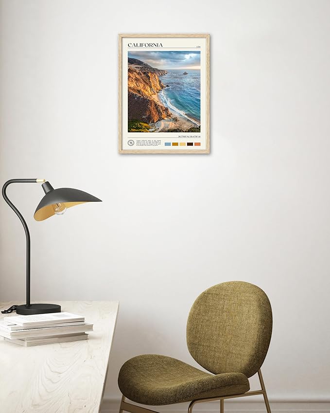 - Coastal California Charm: Immerse yourself in the natural allure of California's coastline! This artwork captures the essence of seaside landscapes, transporting you to the serene beaches and lush coastlines, infusing your home with captivating oceanic vibes.