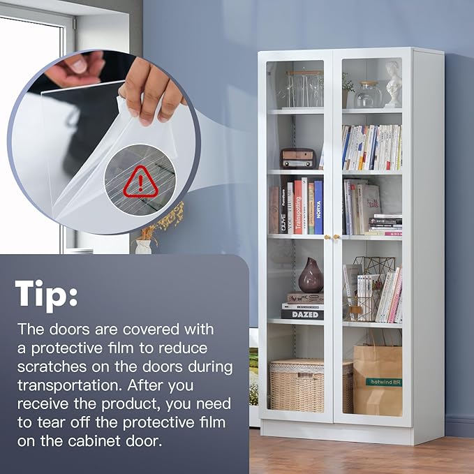 - Display Cabinet with Acrylic Doors: The 2 doors of this curio cabinets with Acrylic, so that the items inside are clear at a glance, easier and fast for you to find files, medicine,et. Warm Tips: Acrylic doors come with a peel-off protector.