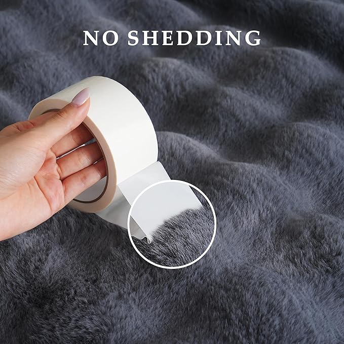 - Luxury Double-Sided Faux Fur: Unlike regular faux fur blankets, ours features double-sided faux rabbit fur. One side showcases a 3D bubble faux fur with a full and dimensional bubble texture, while the other side offers smooth and ultra-soft faux fur. Compared to regular crystal velvet, it's more static-resistant, softer to the touch, and warmer against the skin.
