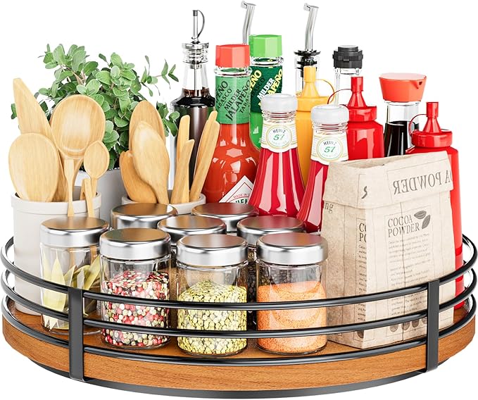 - Space-Saving Turntables: This wood lazy susan organizer measures 10 inch,providing more storage capacity in your deep cabinets,pantry shelves and cluttered corner countertop , Making the most use of the limited space in your home to keep things neat and organized.