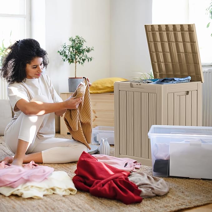 - 28 πππππ’π‘ πππ‘ππ₯π’π¨π¦ π¦π§π’π₯πππ πππ£ππππ§π¬ - This deck box offers ample space to accommodate both indoor and outdoor storage. With dimensions22.09"L*17.09"W*20.87"H,it will provide enough room to store all your belongings,perfect for large cushions,tools and pool supplies,etc