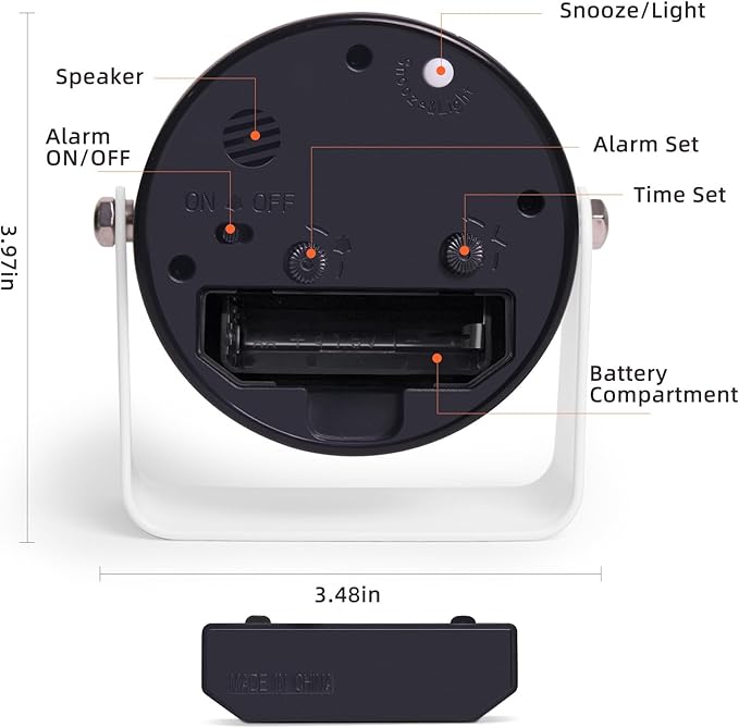 - Silent Operation - Enjoy undisturbed sleep with the non-ticking, high-quality quartz movement of this analog alarm clock. Features a separate alarm switch and a simple knob for setting time and alarm, ensuring ease of use and precise timekeeping.