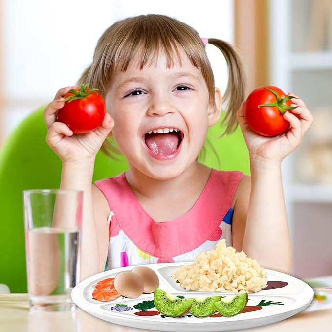 - Captivating Design: Our plate's engaging design captivates children's attention, inspiring active participation in meal preparation. Divided into 3 sections, each visually represents the ideal protein, vegetable, and carbohydrate ratio, fostering healthy eating habits.