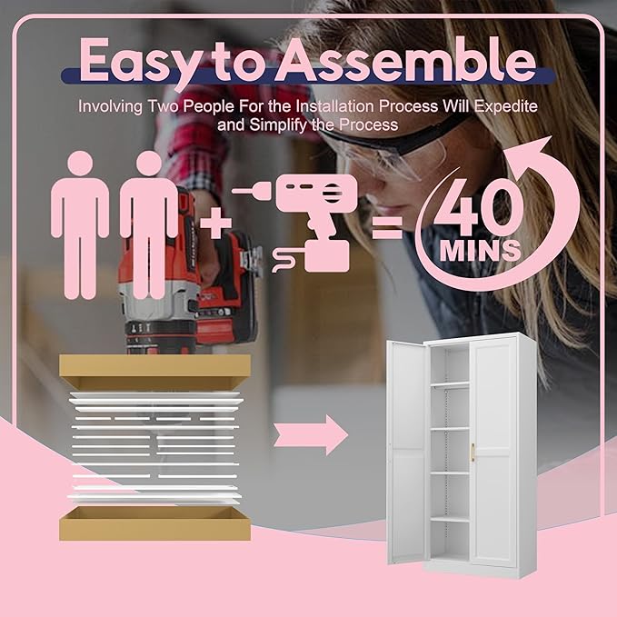 - EASY ASSEMBLING: The pantry measures 71"H x 32"W x 16"D. We recommend that two adults work together to install the metal cabinet. Using an electric screwdriver can make the installation process more efficient