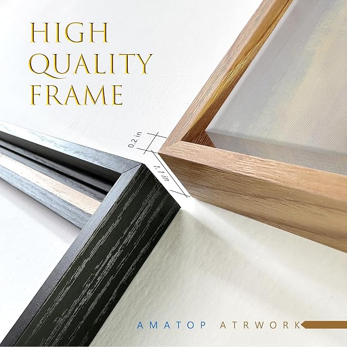 - ➤Frame Details: This canvas wall art is framed in a modern, float frame with natural woodgrain coloring and dramatic depth, the frame measures 1.06 in. wide. The frame is carefully crafted to create the illusion that the canvas is floating, adding depth and dimension to your coastal decor wall art.