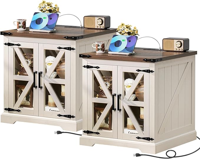 - 🏡[Functional Art Piece]The oversized end tables living room storage design provides convenient storage for your living space. The built-in shelves can be adjusted to 3 different heights as per your needs, accommodating an abundance of books, blankets, or coffee mugs. The glass barn-style doors blend traditional farmhouse aesthetics with a modern sensibility, transforming this piece into a more contemporary farmhouse night stand, coffee table, bedside table, or side-of-sofa art.