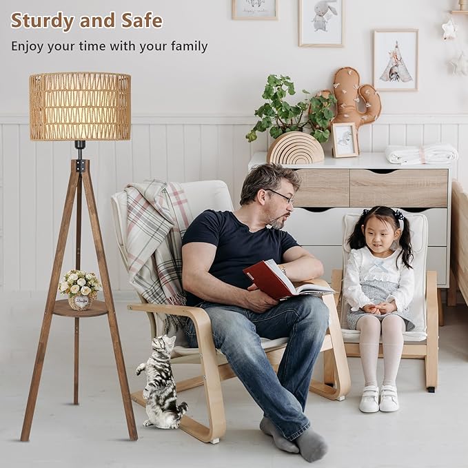 - 【Floor Lamp With Shelves】The mid century floor lamp is not just about lighting, it also includes a practical wooden shelf integrated into the tripod design, ideal for storing and displaying small objects like books, plants, or decorative items. This farmhouse floor lamp is versatile enough to enhance any living room, bedroom, dining room, study, office, or even as a stylish addition beside your sofa or bed.