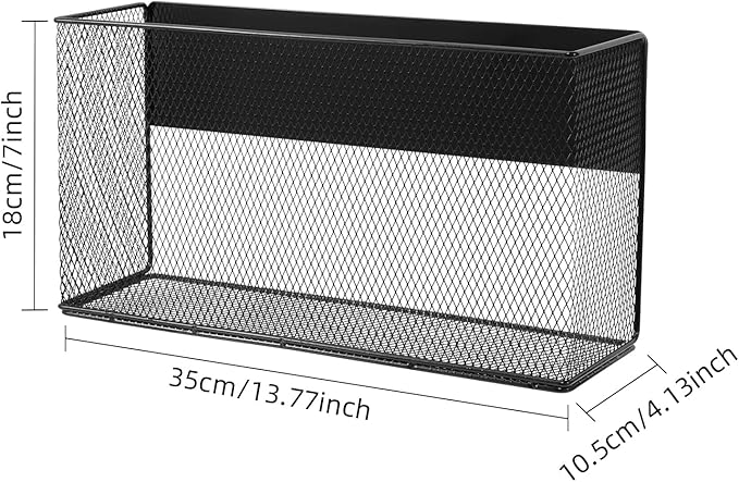 - Multi-purpose: The magnetic basket for fridge measuring 13.77" Ă— 4.13" Ă—7.08 inches can not only store paper, magazines and newspapers, but also office supplies such as markers, pens, scissors, etc. It can also store condiments, preserving film, cereal boxes and other kitchen supplies