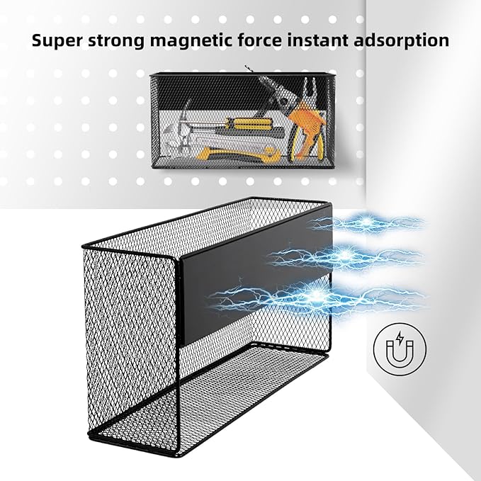 - Mesh Design: The wire mesh structure of magnetic shelves for locker Organizer makes it easy to clean, items are clearly visible and easy to reach, no need to search for items everywhere