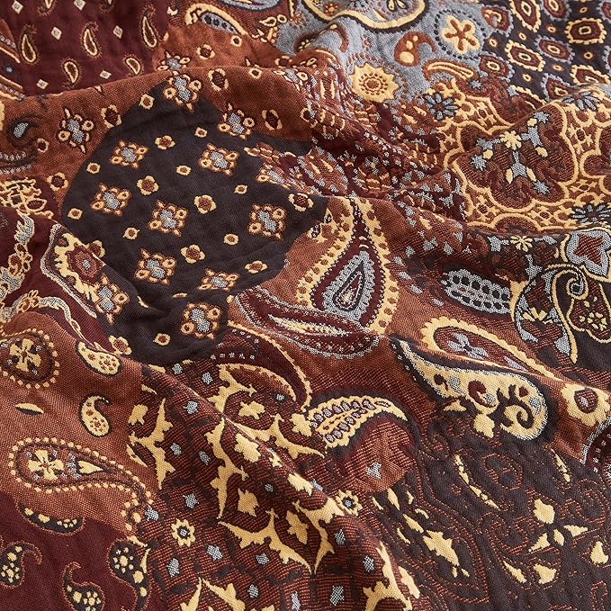 Boho Throw Blanket for Bed 60”x80”, 100% Cotton Woven Blanket for Couch Sofa, Ultra Soft 4-Layer Muslin Quilt with Patchwork Floral Printed, Farmhouse Bed Blanket/Cover for Living Room Decor