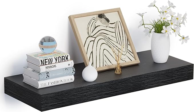 Heimlove 24 x 12 Inch Deep Floating Shelves Wall Mounted with Invisible Brackets,Storage Hanging Shelf for Wall Decor in Bathroom, Bedroom, Toilet, Kitchen, Living Room, Office Set of 1 (Black)