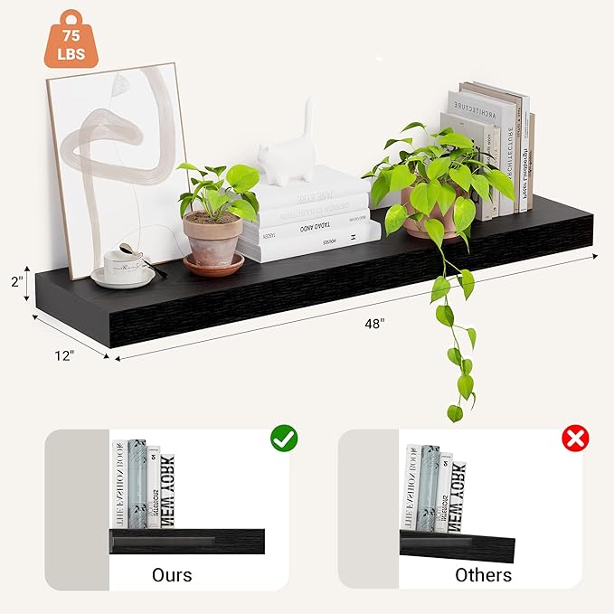 - Sturdy and Effortless Assembly- Includes all necessary hardware to make these floating shelves easy to assemble. We also provide you with detailed install instructions for you to install the shelves in a few minutes.