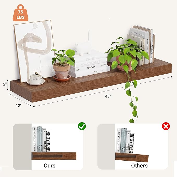 - Sturdy and Effortless Assembly- Includes all necessary hardware to make these floating shelves easy to assemble. We also provide you with detailed install instructions for you to install the shelves in a few minutes.