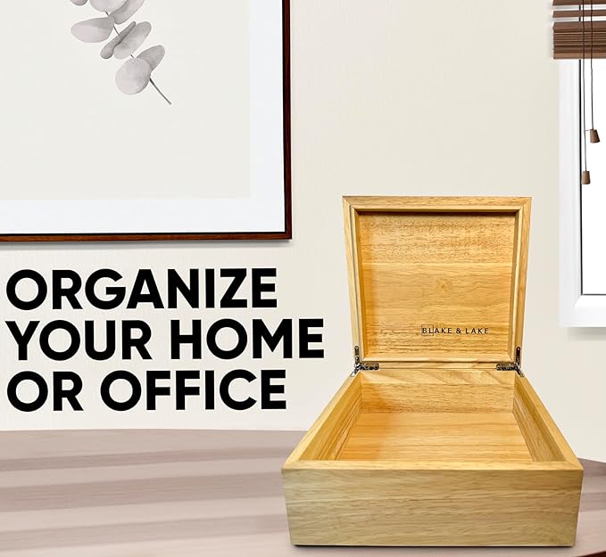 - Give the Gift of Organization with a wooden storage box by Blake and Lake. Comes with the Blake & Lake recycled cardboard box which makes it perfect for gift wrapping. Proudly give the gift of a wood eco keepsake box to a friend or loved one knowing it's not only safe for your home but a solid wood box that will last a lifetime!