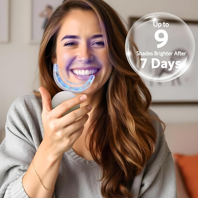 - 9 shades whiter in 7 days: Enjoy professional-level teeth whitening in the comfort of your home! Our kit is designed to provide visible results in just 7 days. Use it for 16 minutes per day to quickly and effectively whiten your teeth without the need for expensive dental visits