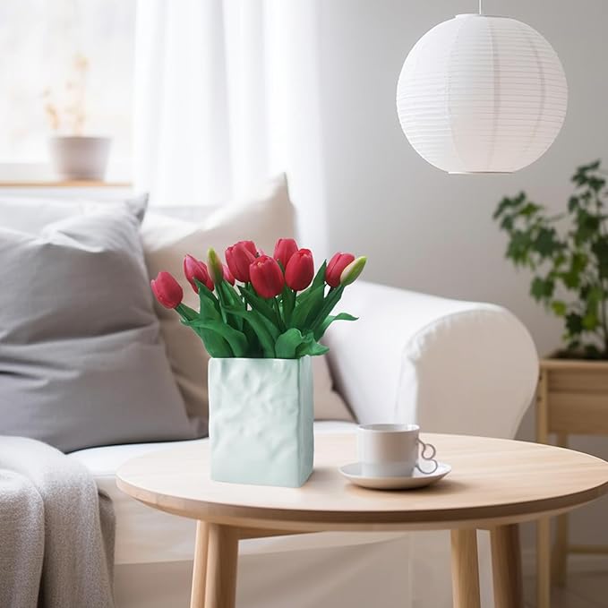 - [Low Maintenance]: Compared to real flowers, fake tulips require minimal upkeep. faux tulips won't wilt, offering a long-lasting decorative option. There's no need for watering, pruning, or sunlight, making them perfect for busy individuals or environments where real plants struggle to thrive.