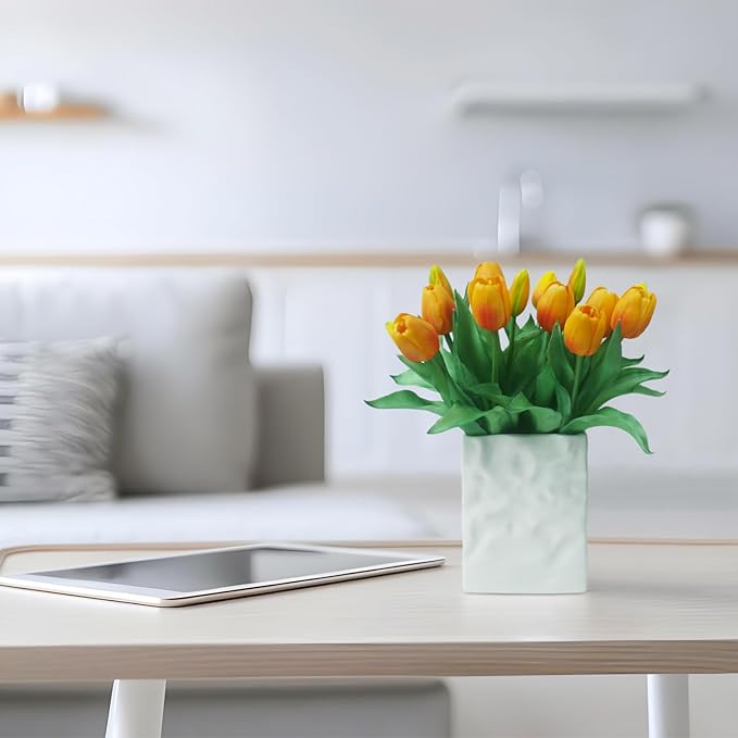 - [Low Maintenance]: Compared to real flowers, fake tulips require minimal upkeep. faux tulips won't wilt, offering a long-lasting decorative option. There's no need for watering, pruning, or sunlight, making them perfect for busy individuals or environments where real plants struggle to thrive.