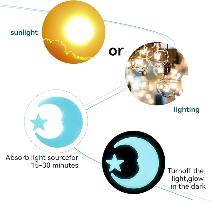 - Package Included: You will receive 100 luminous stars and 1 lunar wall sticker. The star size is 1.1 inches/2.85 centimeters, and the moon size is 2.7 inches x 3.1 inches