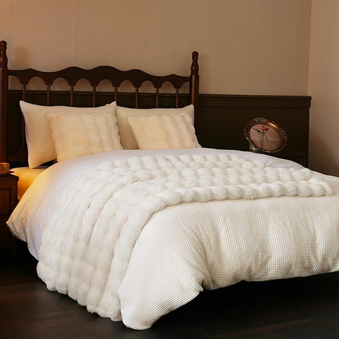 BENVWE Faux Fur Throw Blanket for Couch - Thickened Fluffy Soft Bubble Blanket for Living Room Home Decor - Mothers Day Birthday Gifts for Women Men, Cream White, 50" x 60", 1300GSM