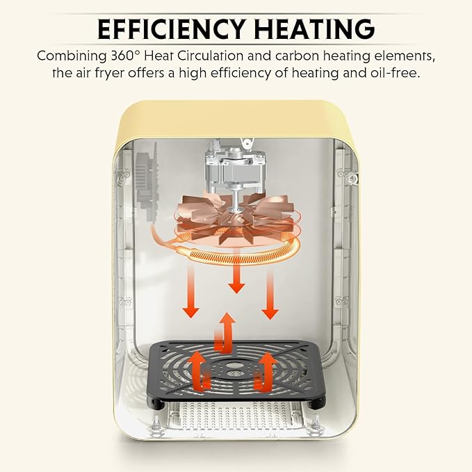 - Healthier & Fast Cooking - With 360° heat circulation and advanced carbon heating elements, enjoy meals with up to 90% less oil—ideal for maintaining a healthy diet without sacrificing crispy taste.