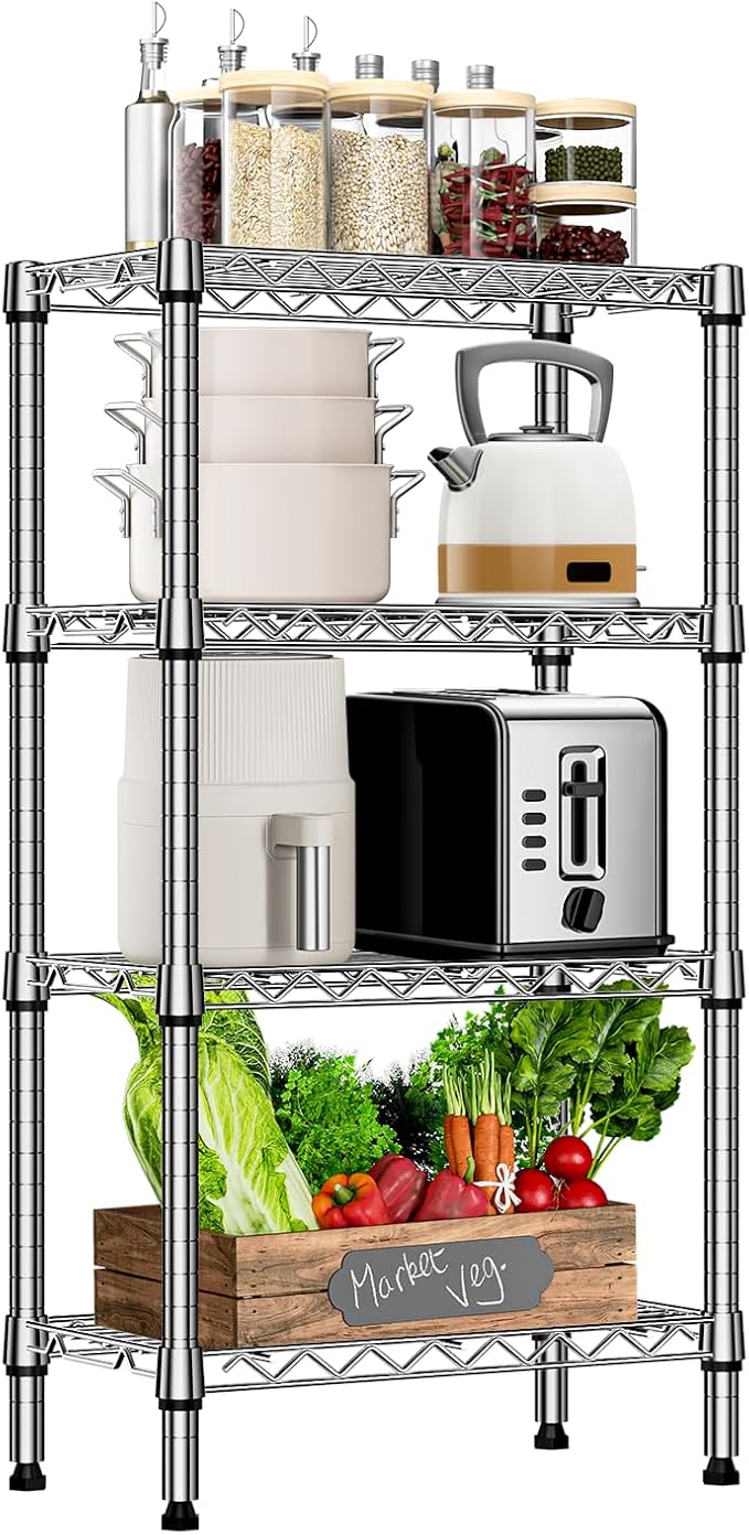 1000 lbs 4 Tier Shelf Metal Storage Shelves Wire Rack Closet Organizers with PP Board for Garage Kitchen Bathroom Laundry Chrome 11.8" D x 21.7" W x 39.5" H
