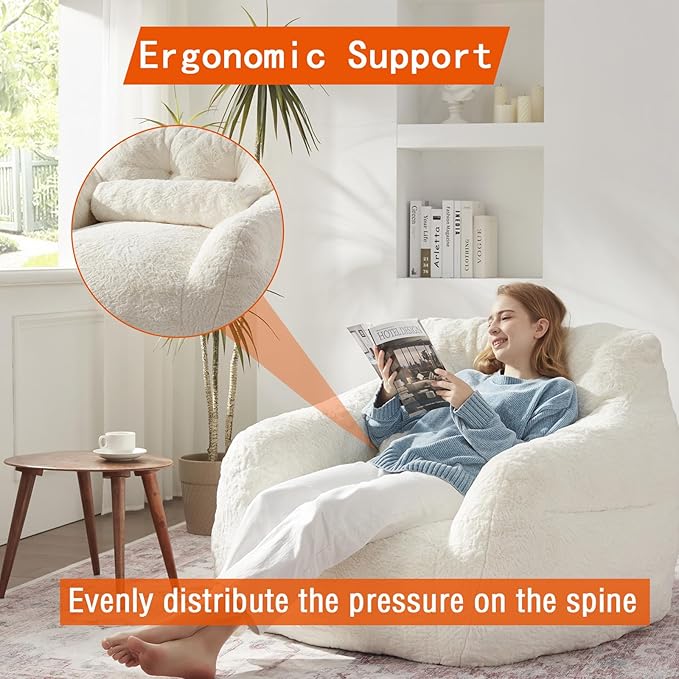 - 【COMFORTABLE and SOFT FABRIC】: Plush fluffy bean bag chair sofa is made of faux fur fabric, which is soft and delicate. The fuzzy beanbag chair is stuffed high-density sponge, high quality and high resilience. Soft material and full filling, both to ensure a good comfort feeling, and also provide the optimal support.