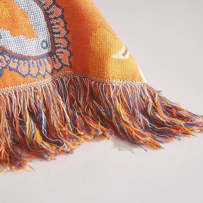 Boho Throw Blanket for Couch Sofa Bed, 100% Cotton Woven Quilt with Tassel 60”x80”, Super Soft Muslin Blanket with Oriental Universe Printed, Decorative Reversible Bed Blanket/Cover for All Seasons