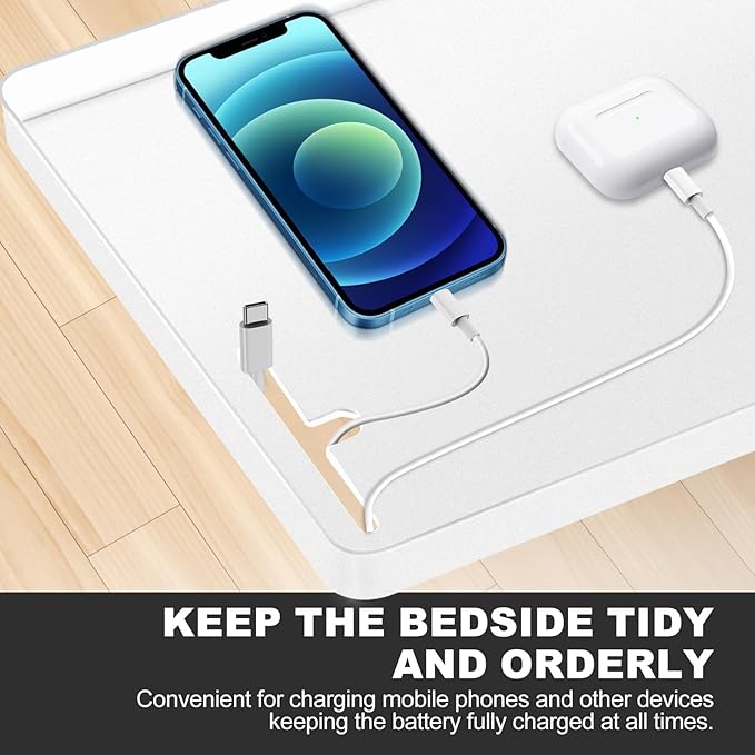 - MADE FROM HIGH-QUALITY ABS MATERIAL WITH METAL SUPPORT STAND: It securely attaches to the side of the bed, preventing sliding or tilting.Safely holding up to 35lbs.It have two T-shaped cable catch organizer to hold multiple cables at one time,providing a convenient and effortless charging solution while using electronic devices. This thoughtful enhancement ensures that your charging experience is both convenient and stress-free.