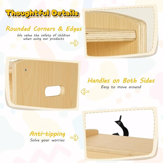 - Designed for kids: With a total height of 23.6", no cabinet door to cover,all things can be seen, kids and even toddlers can easily reach items on the wooden cabinet, fostering good habits of organizing and cleaning. Also,the edges and corners of this cubby are smoothly rounded off and a metal anti-tipping anchor ensure the safety of children when using it