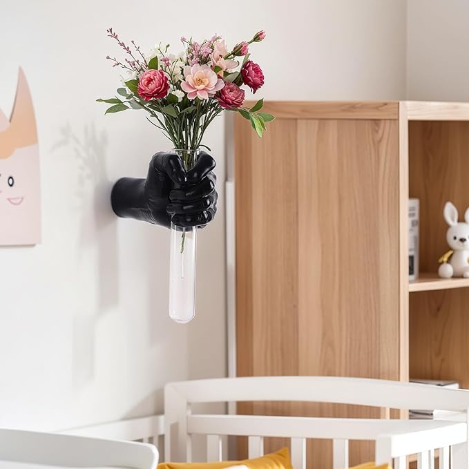 Black Wall Sculptures, Hand Vases Home Decor, Wall Mount Art Sculpture, Unique Wall Art Statue, Funky Flower Vase Decorations, Modern Eclectic Hanging Decor,Glass Test Tube Vase