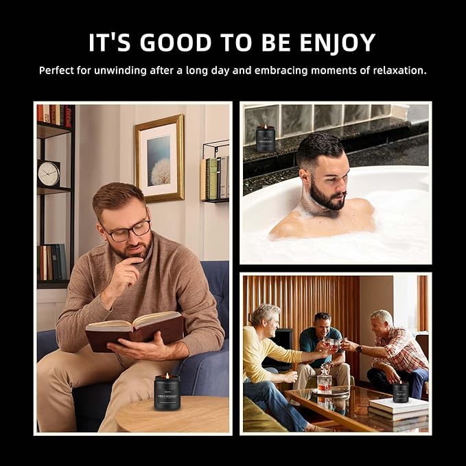Amber & Patchouli Candle | Candles for Men - Scented Candles for Home, Gifts for Men - Soy Candle for Home Scented, Aromatherapy Manly Gift - 7oz Black Jar