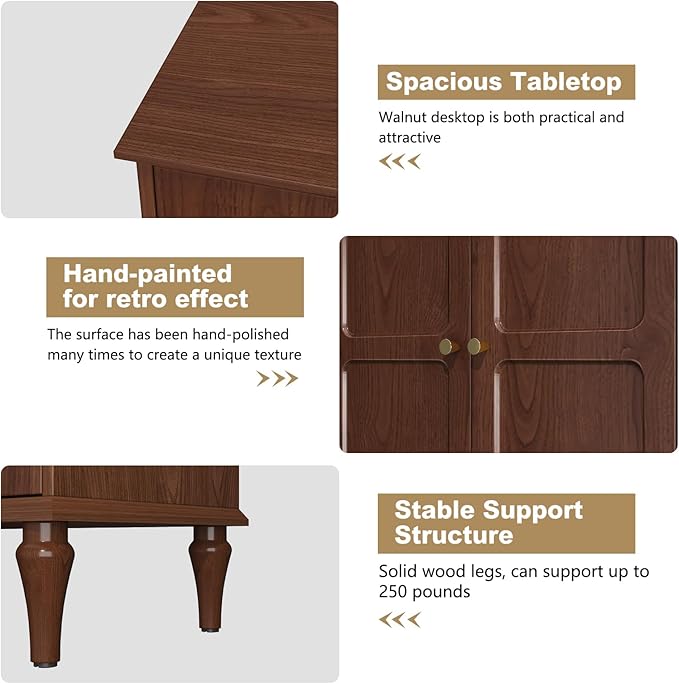 - 【Excellent craftsmanship】: The surface of the entertainment console is specially hand-processed to present a special texture. The 6 solid wood legs adopt the classic Roman column shape, presenting a unique medieval style. The back of the media center cabinet has cross-layered oval cable management holes to organize messy electronic wires.