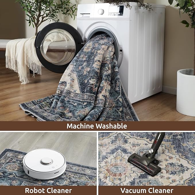 - Easy Care:For daily maintenance, spot clean your rug regularly to eliminate dust and dirt. Machine washable, launder your rug on a gentle cycle with water below 40°C, using a mild detergent or rug cleaner when needed.If the rug is located in an area that receives direct sunlight, regularly rotate your rug so that it fades evenly over time